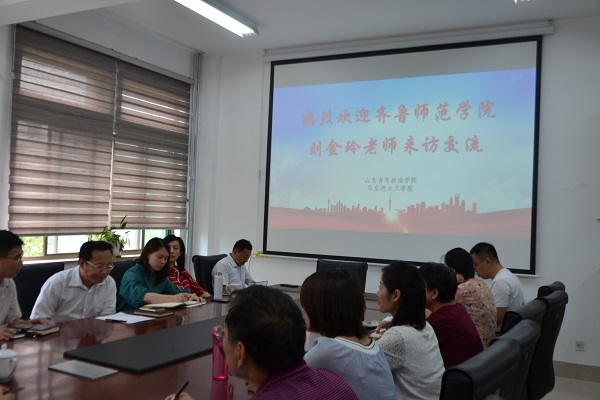 6月6日,马克思主义学院继续开展提升教师教学能力系列活动。马院邀请齐鲁师范学院课堂教学名师、2018年第三届山东高校思想政治理论课教学比赛一等奖获得者刘金玲副教授来校交流研讨。交流研讨活动由院长刘丙元主持,马克思主义学院全体教师参加了此次活动。