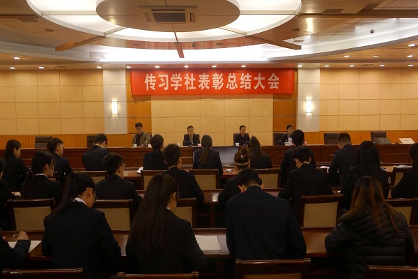 会议表彰了“优秀传习者”和“优秀干事”荣誉称号获得者,宣读了各部门新任副部长名单,观看了传习学社阶段性成果视频。传习学社工作委员会负责人及各部门负责人分别做了前期工作汇报。会上党委副书记高峰做了关于传习学社发展定位及发展思路的重要讲话。高峰指出,传习学社要努力做一个高质量发展的理论学习型社团。对于学社的发展思路,高峰提出了五个方面的要求:一学社发展的基本前提,要保持正确的政治站位。高举中国特色社会主义理论伟大旗帜,走中国特色社会主义道路;二学社成员的理论特质,要有扎实的理论功底。要吃透马克思主义的基本原理,掌握马克思中国化的最新理论成果,尤其是习近平新时代中国特色社会主义思想。秉承知行合一的原则,坚持问题导向,在实践中深化理论学习。多读经典,从经典中学。在学习过程中要避免经验主义和教条主义两种错误倾向,对马克思主义做到“真学、真懂、真信、真用”;三学社成员的精神特质,要有敢于吃苦的精神。从小处着手、从自身做起,严守基本的道德规范,坚定不移的贯彻落实社会主义核心价值观,内外于心,外化于行,严于律己,持之以恒,树立正确的世界观、人生观和价值观;四学社的发展根基,要立足于中国大地。注重实践,了解、熟悉、吃透国情、社情、民情,在实践中增长才干,在干事创业中增强服务社会的本领。五学社的活动形式,要不断创新,更加灵活。建立面对面、一对一的常态化交流机制。此外,为进一步促进学社的发展壮大,学校团委、马克思主义学院等部门要在资源、经费等方面提供有力保障,同时学社要发挥学员的专业优势,从内外两个方面,实现学社内生型成长。