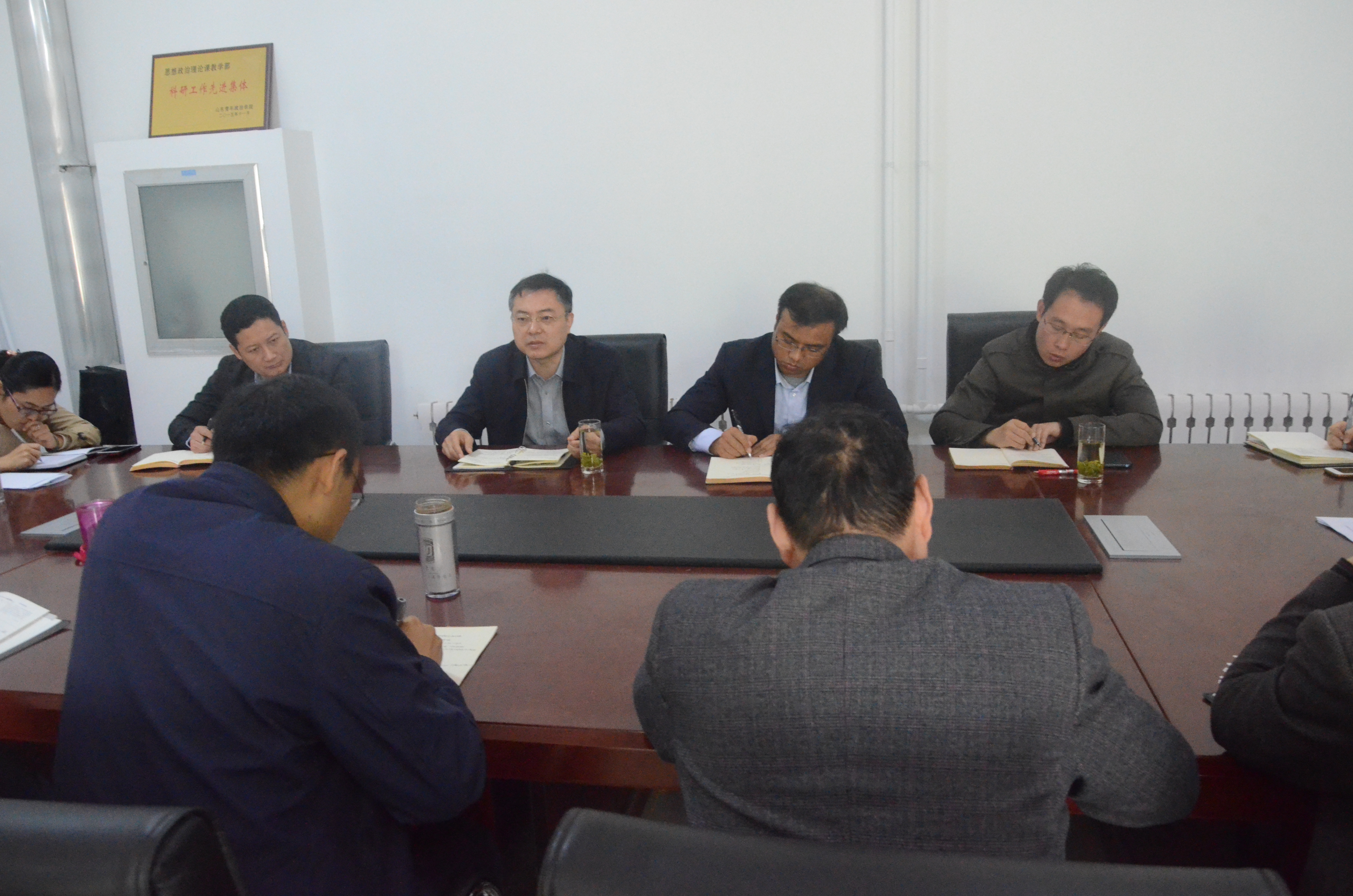 高峰副院长认真听取了大家的汇报,对思政课取得的成绩给予了充分肯定。高院长指出,高校的最根本任务还是立德树人,要培养现代化的综合应用型人才,培养德才兼备的人才,要突出“德”在人才素养中的重要地位。为此,高院长对如何做好我校思政课教学工作提出了殷切的希望和要求,他指出:第一,继续深入学习习近平总书记在全国高校思想政治工作会议上的讲话和中央31号文件,牢牢把握中央关于思政课教学工作的精神要求,融会贯通到我们的实际工作中。第二,全体思政课教师要深刻把握学生特点,以激发学生学习兴趣为出发点,用鲜活的语言和案例,加强教学内容的针对性,提高思政课教学的感染力。第三,面对新形势、新情况全体思政课教师要抓好“育人”主线,继续做好教学改革工作。创新办学形式,对于传统的、好的教学方法要继续保持和发扬,同时要借助互联网创新办学形式,切实提高思政育人的时效性。第四,立足本校实际,积极思考作为地方性本科层次青年政治学院的办学特色,要在如何突出青年政治学院和团校优势上下功夫,打造品牌效应,办具有自身特色的大学。