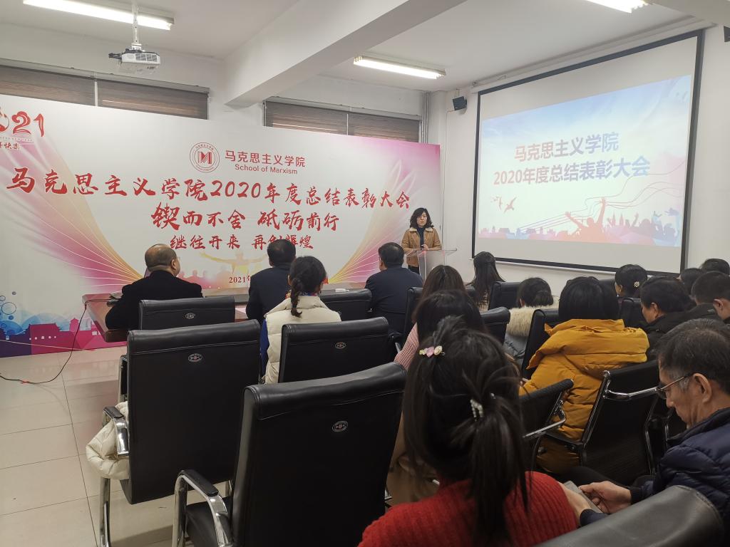 为总结学院2020年度工作,查漏补缺,激发全体教师在新一年的干事创业热情,1月21日下午,马克思主义学院召开2020年度总结表彰大会。学校党委副书记高峰出席表彰大会并讲话,会议由马克思主义学院直属党支部书记温永慧主持,马克思主义学院领导班子成员和全体教师参加表彰大会。