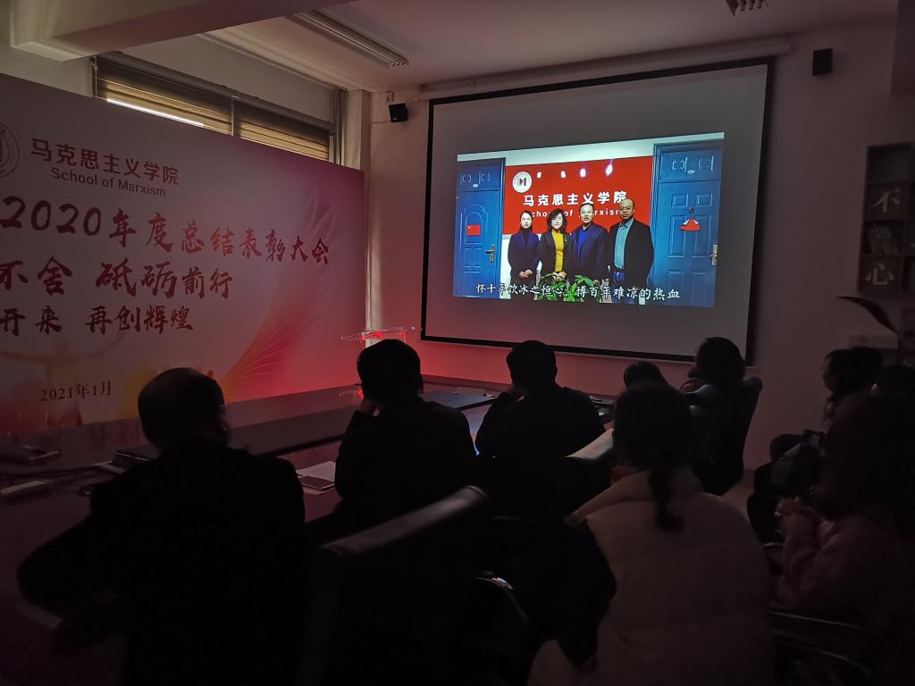 大会播放了《马克思主义学院2020年“专属日历”》视频,总结了学院在党建、教学、科研、育人、社会服务等方面取得的重要成果和涌现出的先进典型,对学院2020年重点工作进行了安排部署,并对2020年度考核优秀人员和表现突出的个人进行学院表彰奖励。