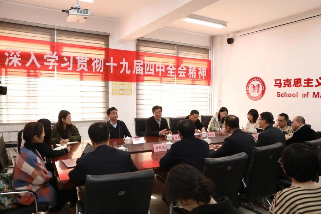 11月22日上午,山东师范大学党委书记商志晓到马克思主义学院座谈调研,围绕学习贯彻党的十九届四中全会精神开展交流研讨。学校纪委书记崔连富、马克思主义学院全体教师、部分学生代表参加。