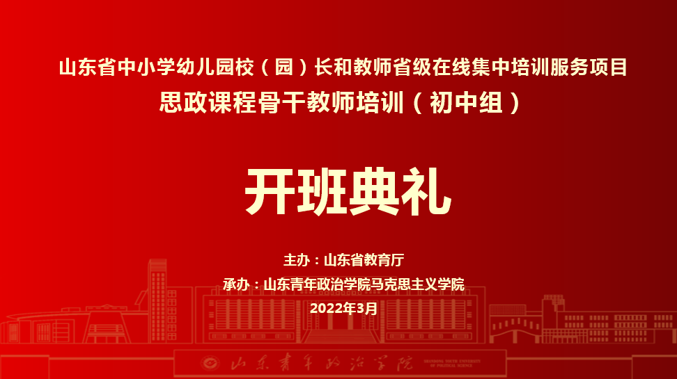 3月7日上午,山东省中小学思政课程骨干教师培训班(初中组)开班仪式在学校举行。学校党委副书记高峰,教务处、信息化工作办公室、马克思主义学院等部门负责人,全省164名初中组思政课程骨干教师代表参加开班仪式。仪式由教务处处长孟繁兵主持。