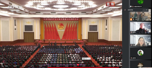 百年恰是风华,奋斗点亮青春。5月10日上午,庆祝中国共产主义青年团成立100周年大会在北京人民大会堂隆重举行。马克思主义学院通过线上、线下相结合的方式,组织全体师生收听收看中国共产主义青年团成立100周年庆祝大会盛况。