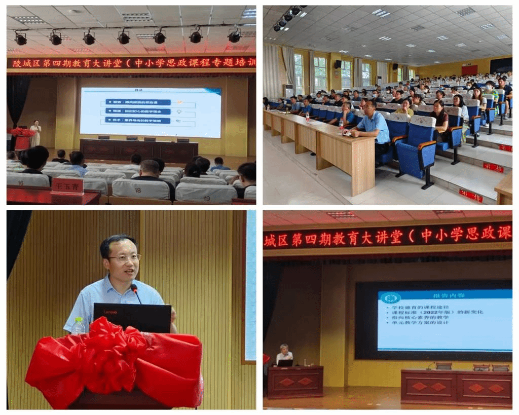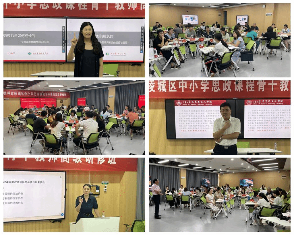 近日,由马克思主义学院和德州市陵城区教育和体育局联合主办的德州市陵城区2022年度中小学思政课程教师全员培训活动圆满结束。本年度培训活动采用点面结合、分层递进方式进行,马克思主义学院精心设计了课程体系,延请10余位思政课专家和教学名师开设了针对性专题讲座,德州市陵城区数百名中小学思政课教师分两批次参加培训。