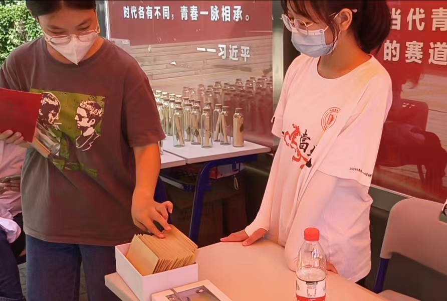 迎新现场,学院还精心组织了“老生送祝福”“新生展未来”等主题活动。师哥师姐们在“老生送祝福”环节写下对于新生们的浓浓祝福和期盼,希望新生们能“入马院,走红途”;每位新生通过盲抽一封祝福信,感受到了来自师哥师姐们的真挚情感和“一马当先”精神的传承;在“新生展未来”环节中,新生将对未来的憧憬和愿望写给四年后的自己,放于漂流瓶中,等待毕业时再次开启,借此激励自己,完美兑现自己曾许下的诺言。从迎新展板制作到防疫物资准备,从新生信息审核到报到场地布置,从迎新时间及路线规划到主题环节的设计安排,充分体现了马克思主义学院对迎新工作的重视与期待。