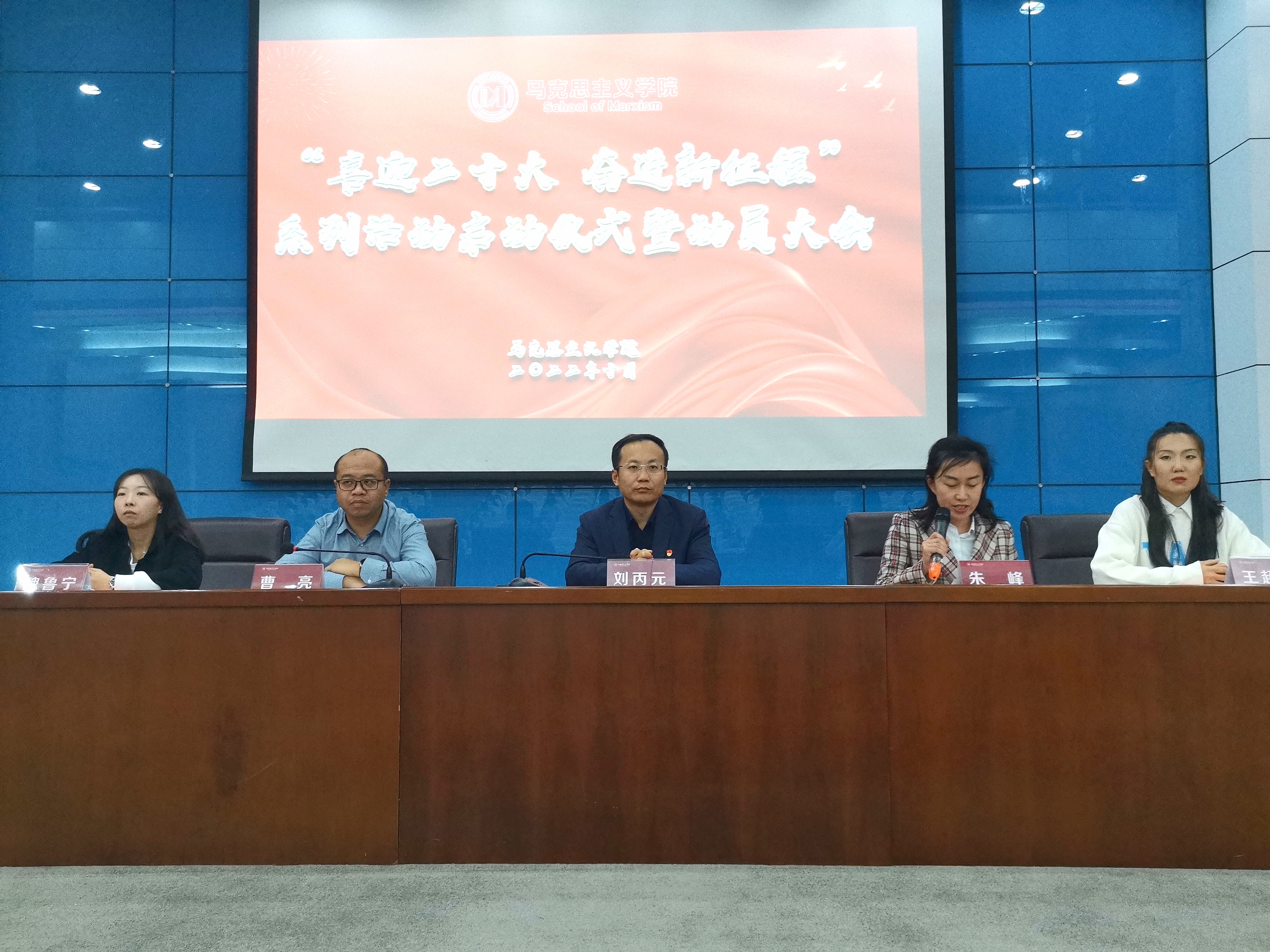 为了增强学生的使命感、责任感,更好地迎接党的二十大胜利召开,10月7日下午,马克思主义学院举行“喜迎二十大 奋进新征程”系列活动启动仪式暨动员大会。学院领导班子成员、辅导员及全体学生参加此次活动。
