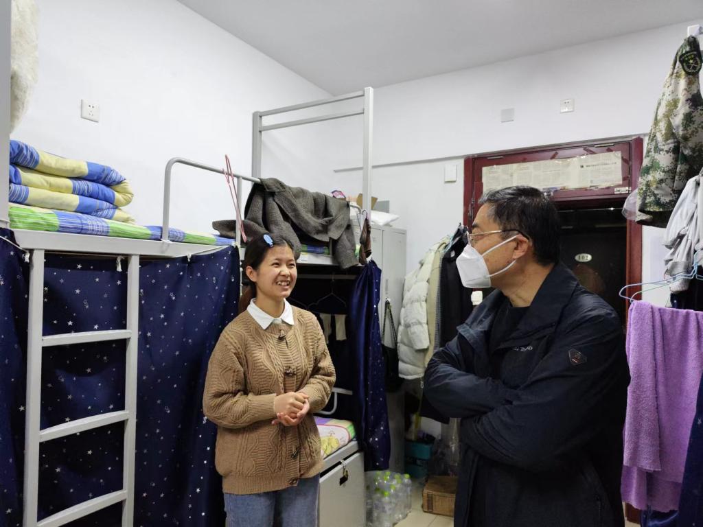 11月21日上午,学校党委副书记高峰深入马克思主义学院学生宿舍,与同学们进行了亲切交流,详细了解了同学们生活、学习和心理状况,听取了他们在现阶段的困难和需求。他表示,面对突如其来的疫情,山青学子始终与学校同向同行、同频共振、共克时艰,涌现出许多优秀的学生志愿者,全体师生用行动诠释着使命担当,以实际行动践行传承了新时期山青精神。2022级思想政治教育专业1班付鑫茹表示,学校的关心和爱护,让我们感受到家的温暖,从早上一睁眼就能吃到的热乎乎的早餐,到牛奶、水果、饼干等一次次爱心礼包的派送,我们何其有幸成为山青学子,学在山青、成长在山青,是我此生最珍贵的记忆。