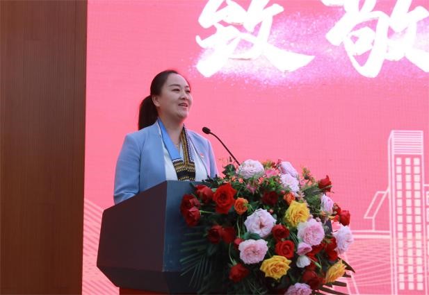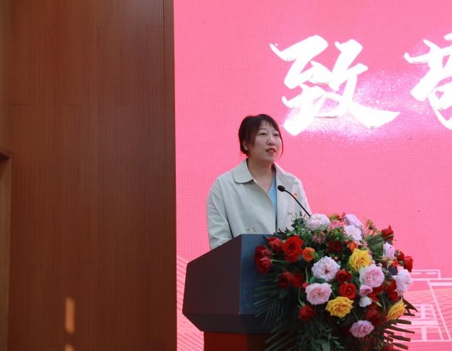 在分享环节,聂栓琴、薛卿、徐彩、王正坤、曲蓉蓉、李哲、司静轩、张栩嘉等8位曾经奋战在各个战位的师生代表上台分享了在疫情防控工作中的所见、所闻、所感。从漆黑深夜的闻令而动到凌晨破晓的艰难前行,从义无反顾的奔赴一线到湿透衣衫的汗水泪水,从带伤坚持战斗到默默负重牺牲,分享者们用令人动容的讲述生动描绘了这样一群山青人的真实画像:他们舍小家为大家,星夜奔赴、冲锋在前,他们声音嘶哑、疲惫不堪,但内心的笃定与担当,汇聚成一股强不可摧的力量;他们,是领导,是老师,是学子,是一个个为了保卫山青而倾尽全力的战士。各位代表的真诚分享,解读了何谓时艰困苦,何谓牺牲战斗,他们也用实际行动诠释了何谓担当、何谓奉献;一点一滴、一人一事,留下的是一个个感人至深的温暖瞬间,更演绎着“用爱守护”。一个个真情故事打动了在场的每一位师生,师生们热泪盈眶,学生们为可爱可敬的战士们献上鲜花,报以热烈掌声,以表达崇敬之情。