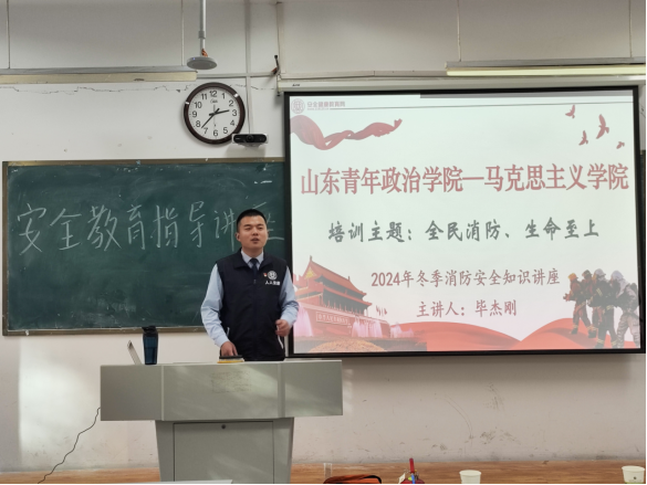 12月5日,马克思主义学院邀请学校安全管理处刘广富老师、安全健康教育网山东站教员毕杰刚开展消防安全教育指导讲座。毕杰刚以“全民消防,生命至上”为题,详细阐述了用电安全、火灾处置、自救互救与逃生等关键知识,并现场示范了灭火器、灭火毯、防烟防毒面具等消防应急物品的使用方法和注意事项,进一步增强了师生消防安全意识,提高了火灾应急处置和自救互救能力。