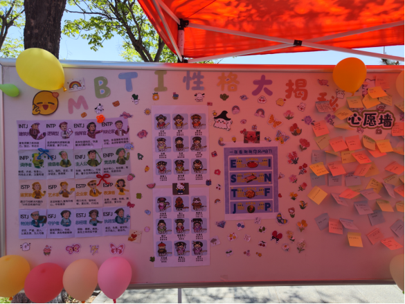 4月28号,马克思主义学院开办“MBTI解码,OH卡探心”主题心理游园会。活动现场,通过匹配MBTI解锁专属人物,深入了解自身性格特点与潜在优势。用OH卡牌以“我”为笔,透析心底的真实想法与情感,在互动体验中增强心理调适能力。此次活动帮助同学们在轻松氛围中提升心理健康意识,为成长注入新动能。