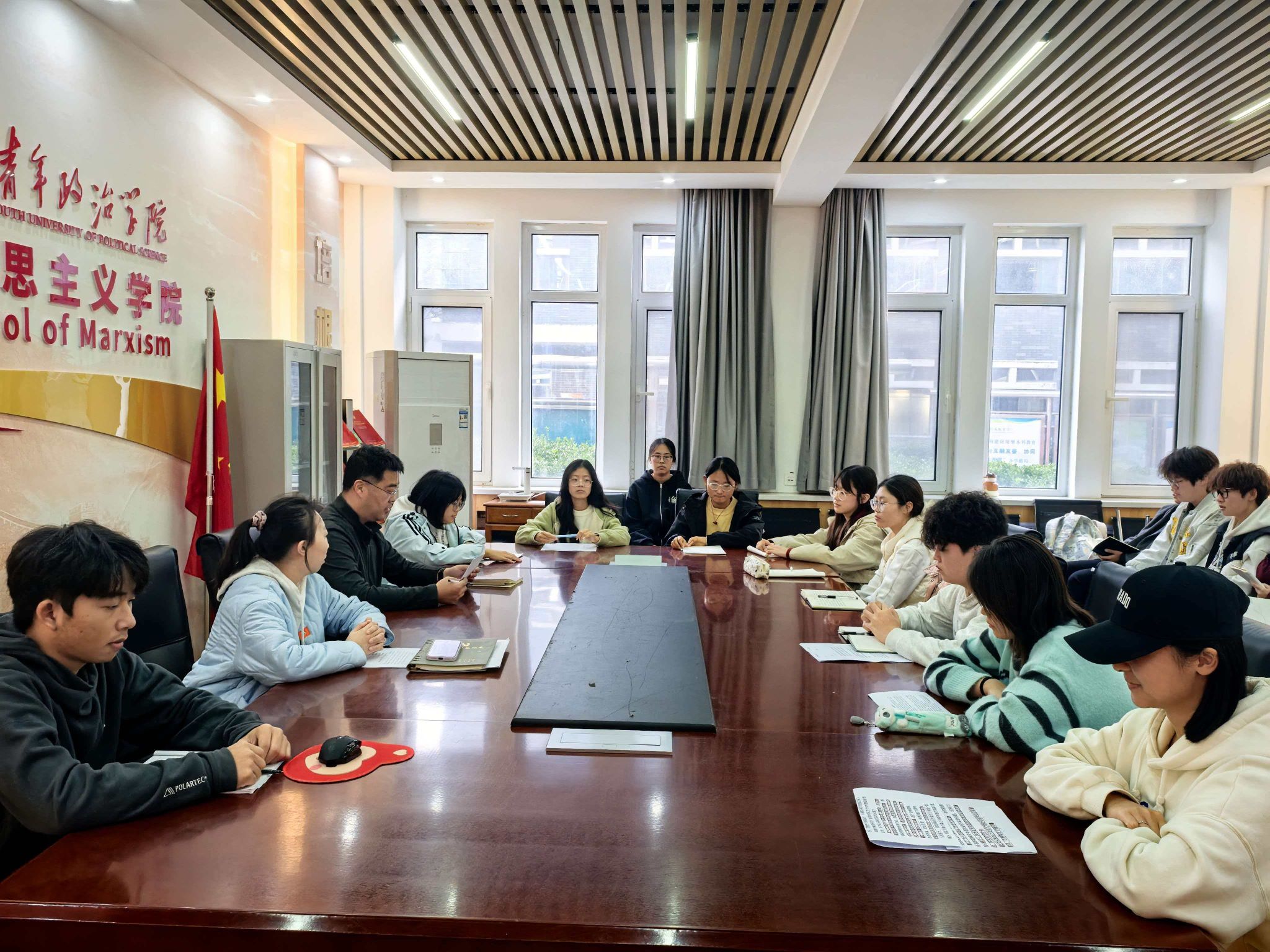 为营造“读经典、学理论、悟思想”的浓厚氛围,10月29日,马克思主义学院举办“红马扎”读书分享会。学院党委书记乔海波与联系班级学生围坐一堂,共同研读经典著作《改造我们的学习》。