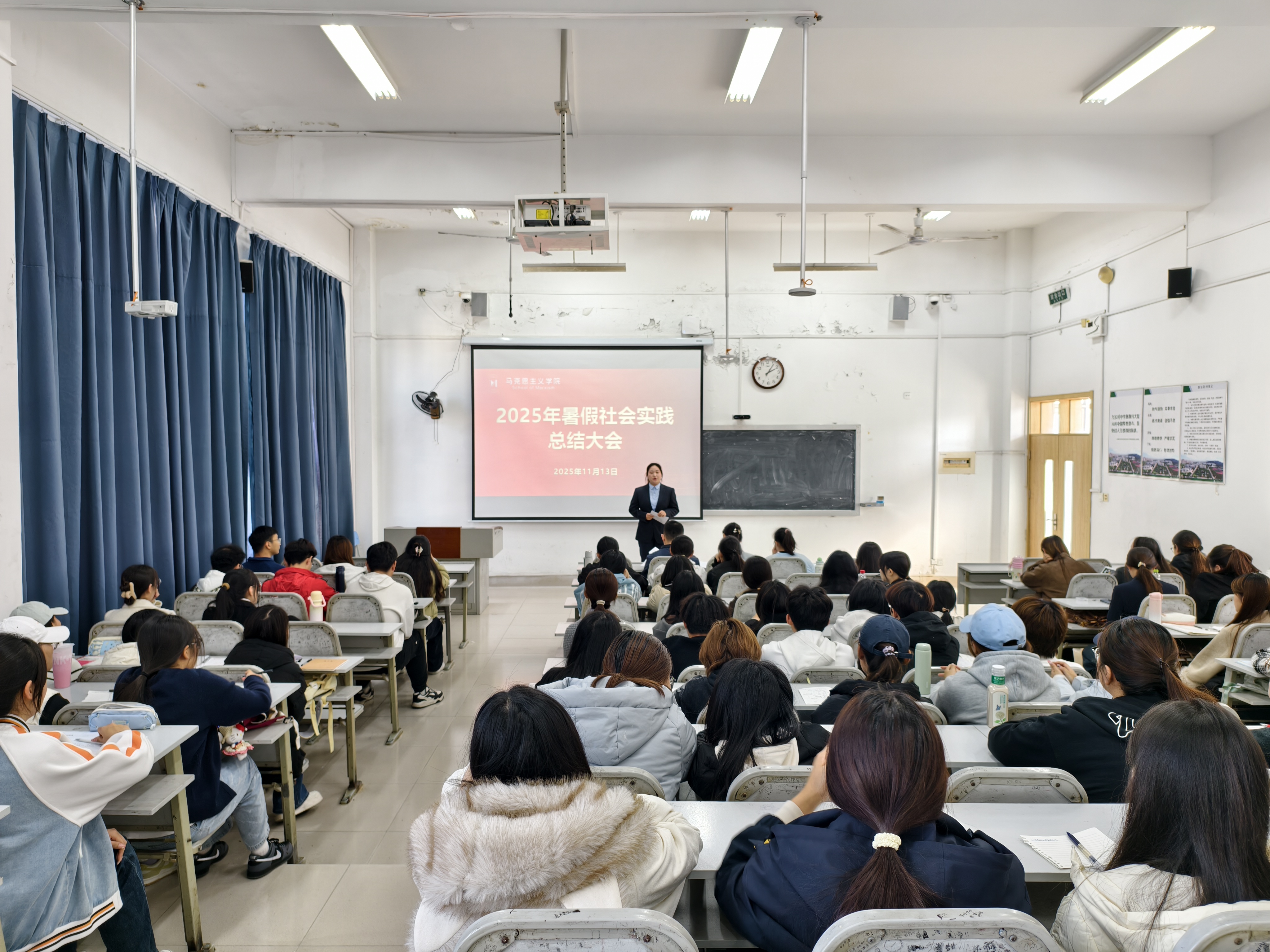 11月13日,马克思主义学院召开2025年暑假社会实践总结大会。团队指导教师、社会实践团队成员、2025级学生参加活动。