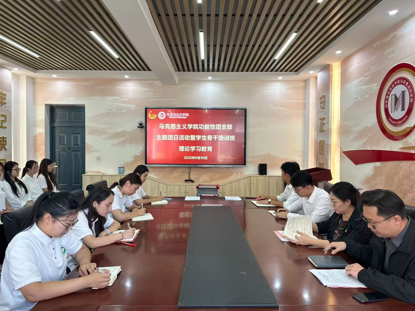 为深入学习贯彻党的二十届四中全会精神,落实习近平总书记关于青年工作的重要思想,提升学生骨干的理论水平与实践能力,马克思主义学院组织开展“青马工程”学生骨干培训班系列活动,全体学生组织成员及2025级班委参加培训。