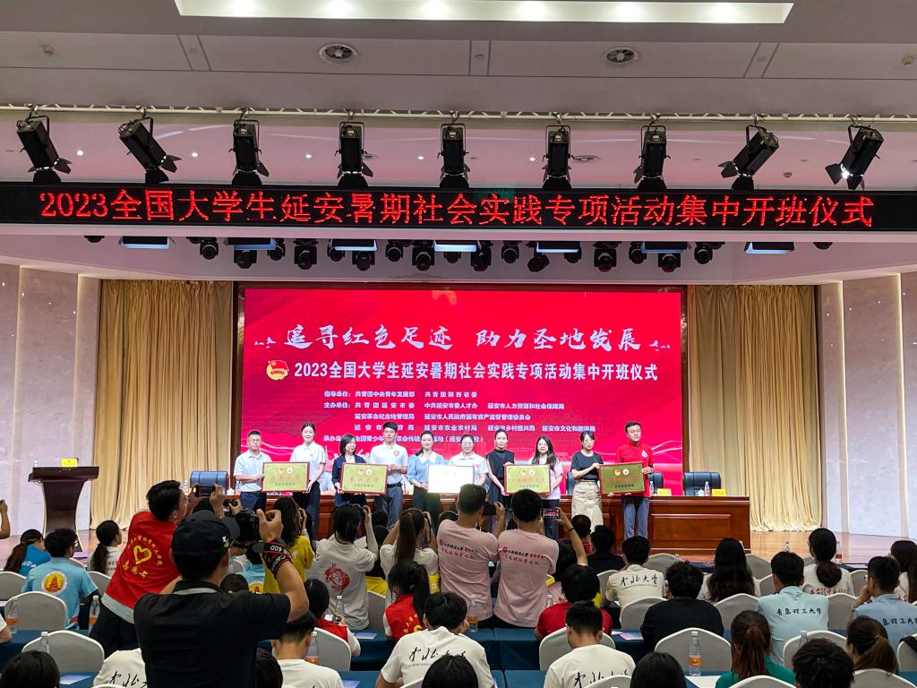 7月26日,“2023年全国大学生延安暑期社会实践专项活动”集中开班仪式在延安宾馆大礼堂举行,共青团中央延安市委书记惠藏锋对各实践队的到来表示欢迎并发表讲话。他指出,全国大学生延安暑期社会实践对接时代要求,面向全国大学生开展红色教育和党性教育,让学员在学习中启迪思想、在行走中感悟历史、在共鸣中传承精神,希望广大学生认真学习延安精神,积极投身社会实践,在实践中贡献青春力量。实践队指导教师王雯雯代表实践队参与大学生社会实践基地的挂牌。开班仪式结束后,延安市人才交流服务中心吴雪老师就延安市人才引进和就业相关政策开展专题讲座。实践团成员任羿璇分享到,在延安我深刻感受到强大的精神力量,这份力量使中国共产党历经百年而风华正茂,饱经磨难而生生不息。通过讲座,我了解到延安为我们大学生提供了很多利好的人才引进政策,我会把这份热情的邀请和难忘的体验带回家乡,把中国式现代化的当代延安分享给更多大学生。