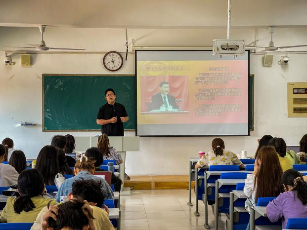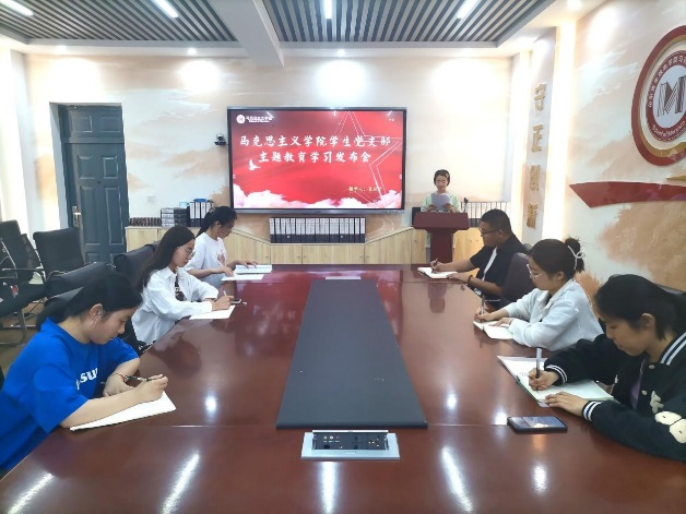 6月5日,马克思主义学院学生党支部书记王雯雯做题为“三个历史决议的比较学习”的主题教育学习专题党课,党支部全体党员和青马班学员参加此次党课学习。