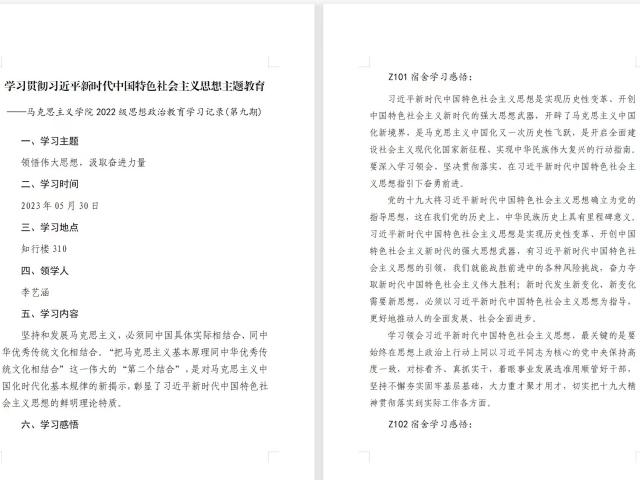 为推动主题教育理论学习深入学生,塑造良好氛围,近期,马克思主义学院积极发挥基层党支部战斗堡垒作用和全体党员的榜样作用,以党建带团建,不断扩大理论学习范围、拓展学习纵深、提高学习实效,持续引导学院师生在学思践悟中凝聚奋进力量。