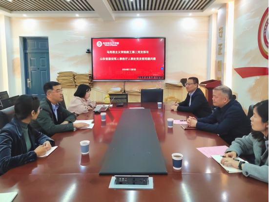 11月5日,山东省退役军人事务厅人事处党支部书记、处长张民及支部成员代表3人到马克思主义学院开展党建联建共建。马克思主义学院党委书记乔海波,教工第二党支部书记、习近平新时代中国特色社会主义思想概论教研室主任邵西梅及部分支部成员参加活动。会议由乔海波主持。