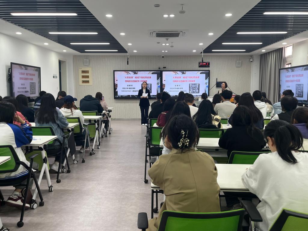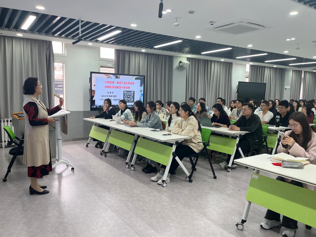 为进一步推动习近平新时代中国特色社会主义思想进课堂、进教材、进头脑,不断推动思想政治理论课改革创新。10月19日下午,马克思主义学院特邀河北大学马克思主义学院柴素芳教授为师生作题为《“大思政课”视域下高校思政课微电影实践教学十年探索》专题讲座。此次讲座由马克思主义学院副院长段微晓主持,我院教师代表及学生代表参加讲座。