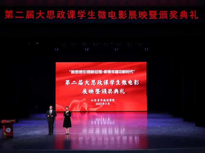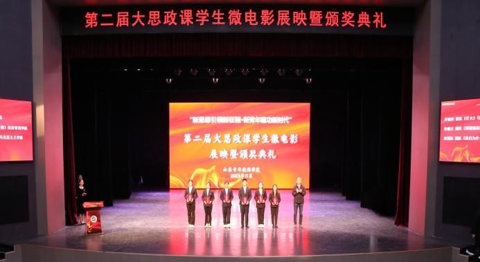 为深入推动习近平新时代中国特色社会主义思想进教材、进课堂、进学生头脑,充分调动青年学生学习思政课的积极性、主动性和创造性,11月30日,由党委宣传部、学生工作处、校团委、马克思主义学院共同举办的“新思想引领新征程·新青年建功新时代”——第二届大思政课学生微电影展映暨颁奖典礼在山青剧院举行,学校党委副书记刘涛,学校党委委员、宣传部部长石瑞宝,团委书记孙明岳、学生工作处副处长万利、各获奖指导教师及全校500余名学生参加此次活动。