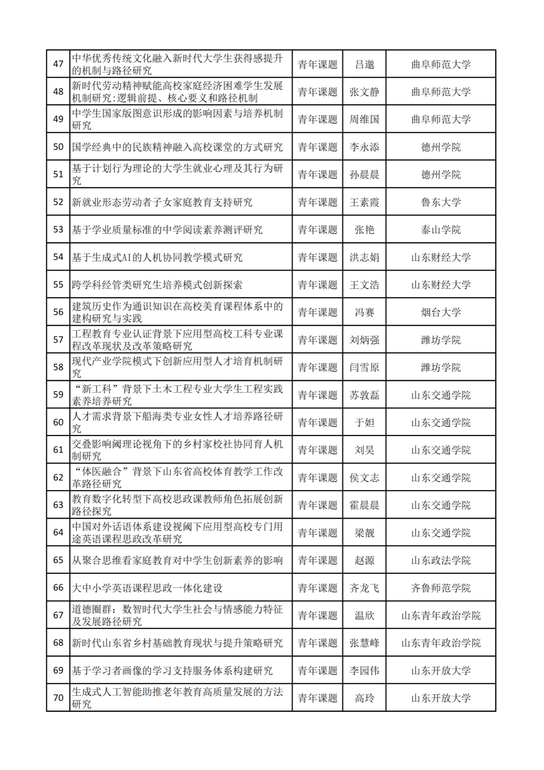 立项的思想政治教育、青年研究项目(省部级以上)
