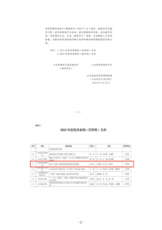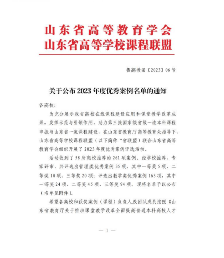 山东省高等学校课程联盟课程教学优秀案例三等奖