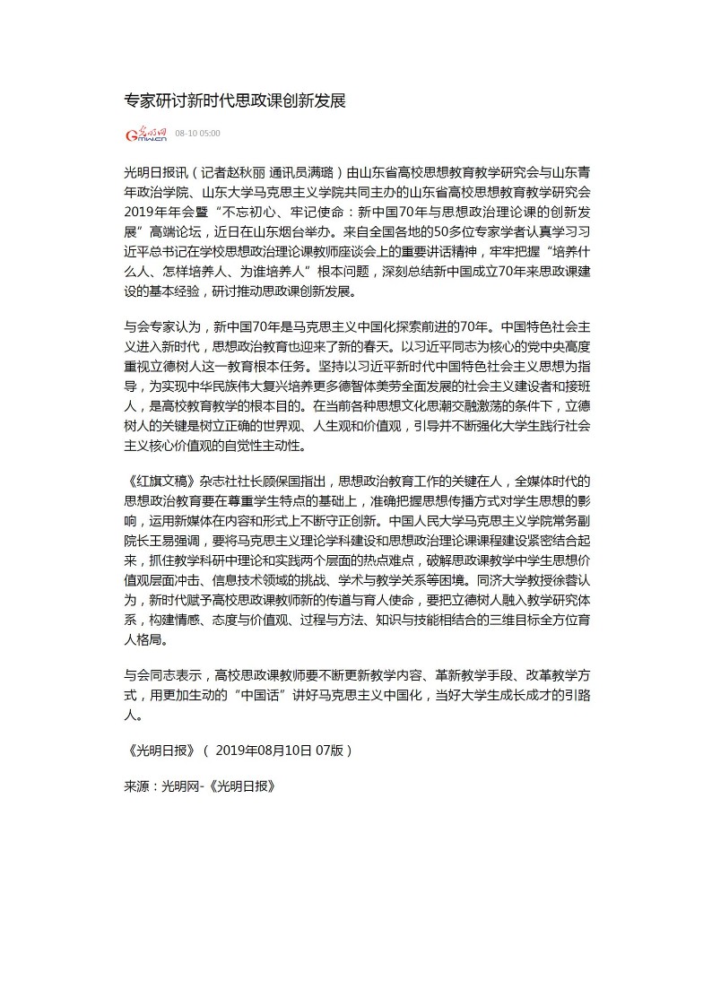 《山东青年政治学院全力打造思想政治理论课“金课”》-山东教育新闻网