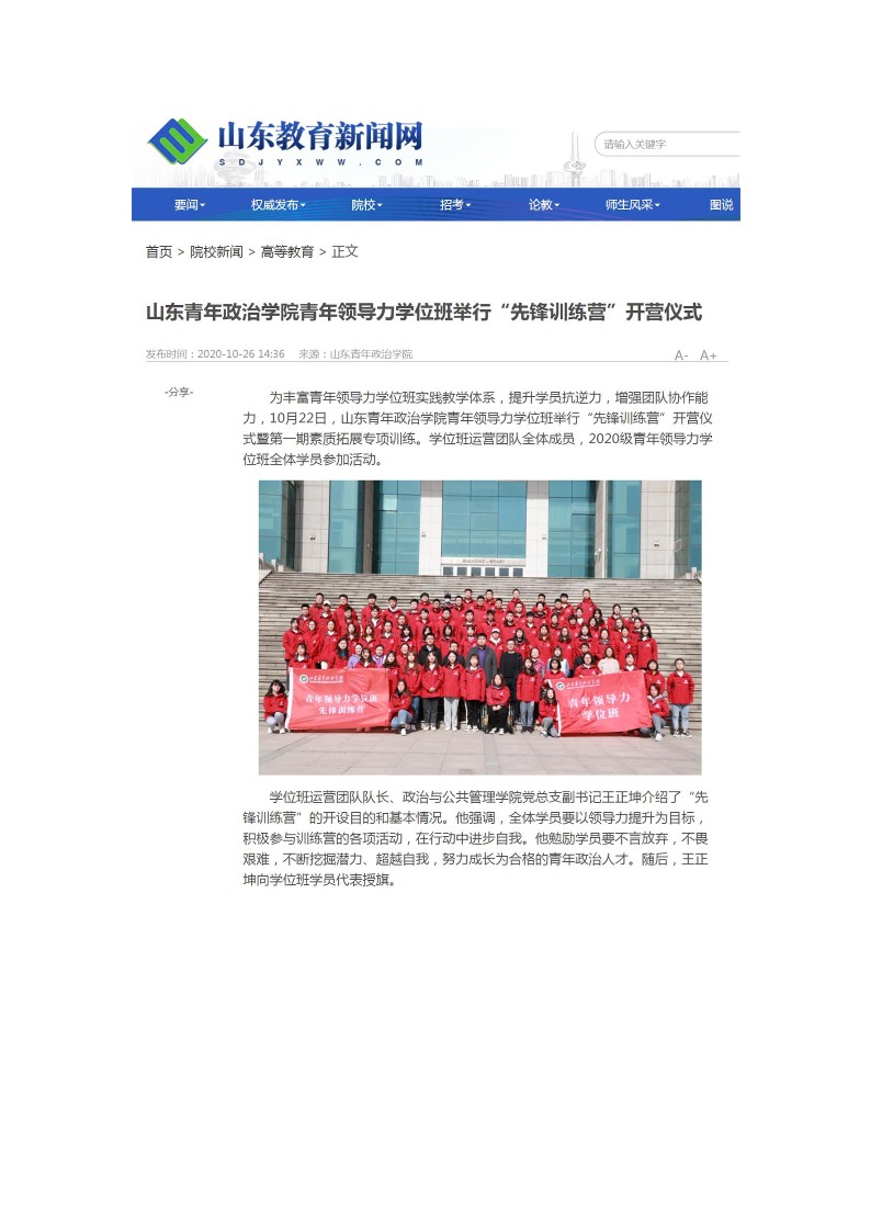 《山东青年政治学院青年领导力学位班举行“先锋训练营”开营仪式》-山东教育新闻网