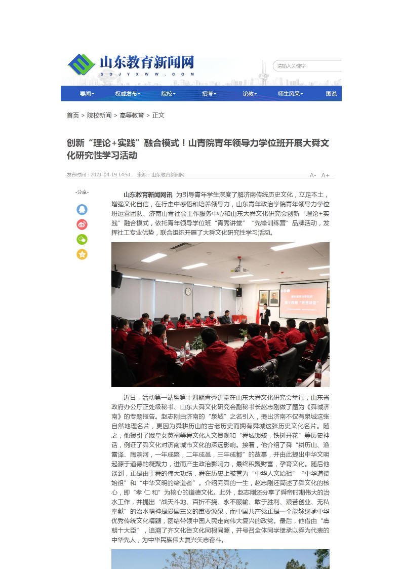 《理论+实践 山青院青年领导力学位班研究性学习大舜文化》
