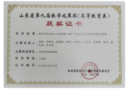 山东青年政治学院高等教育教学成果奖 特等奖