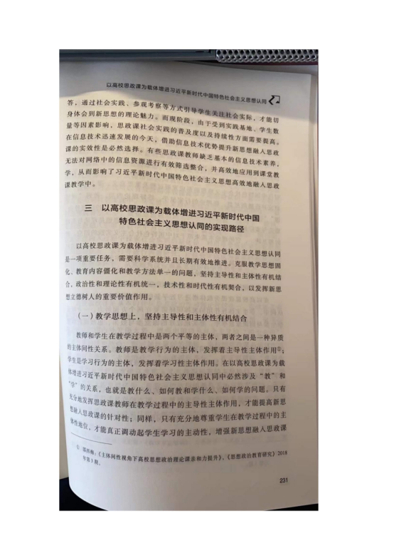 邵西梅《以高校思政课为载体增进习近平新时代中国特色社会主义思想认同》