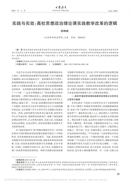 段微晓《实践与实效:高校思想政治理论课实践教学改革的逻辑》